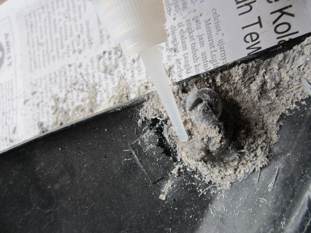 Gunakan lem super tepat pada bagian yang berlubang, .